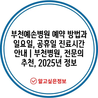 부천예손병원 예약 방법과 일요일, 공휴일 진료시간 안내 | 부천병원, 전문의 추천, 2025년 정보