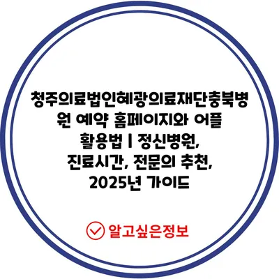 청주의료법인혜광의료재단충북병원 예약 홈페이지와 어플 활용법 | 정신병원, 진료시간, 전문의 추천, 2025년 가이드