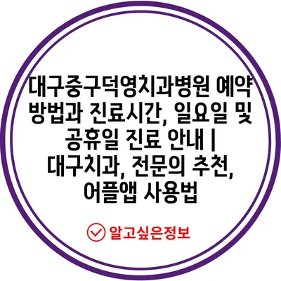 대구중구덕영치과병원 예약 방법과 진료시간, 일요일 및 공휴일 진료 안내 | 대구치과, 전문의 추천, 어플앱 사용법