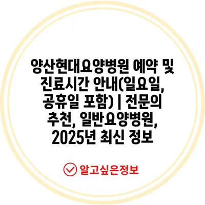 양산현대요양병원 예약 및 진료시간 안내(일요일, 공휴일 포함) | 전문의 추천, 일반요양병원, 2025년 최신 정보