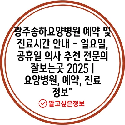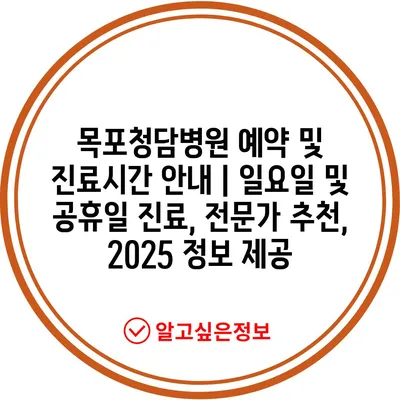 목포청담병원 예약 및 진료시간 안내 | 일요일 및 공휴일 진료, 전문가 추천, 2025 정보 제공