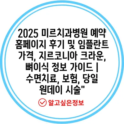 2025 미르치과병원 예약 홈페이지 후기 및 임플란트 가격, 지르코니아 크라운, 뼈이식 정보 가이드 | 수면치료, 보험, 당일 원데이 시술”