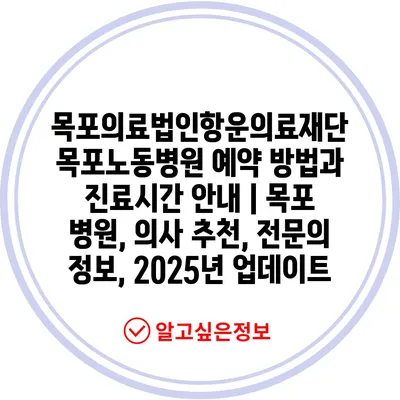 목포의료법인항운의료재단 목포노동병원 예약 방법과 진료시간 안내 | 목포 병원, 의사 추천, 전문의 정보, 2025년 업데이트