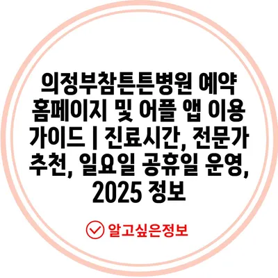 의정부참튼튼병원 예약 홈페이지 및 어플 앱 이용 가이드 | 진료시간, 전문가 추천, 일요일 공휴일 운영, 2025 정보