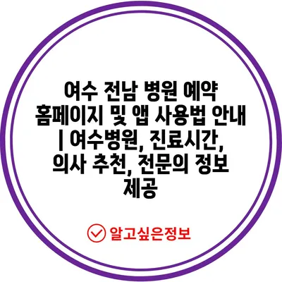 여수 전남 병원 예약 홈페이지 및 앱 사용법 안내 | 여수병원, 진료시간, 의사 추천, 전문의 정보 제공