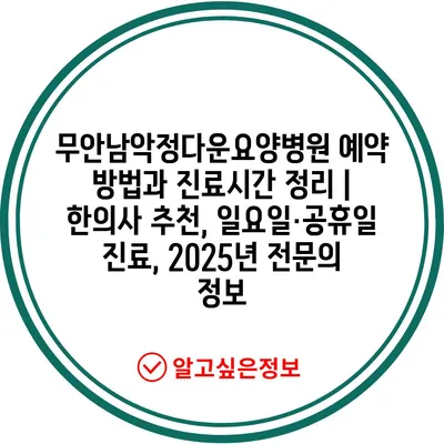 무안남악정다운요양병원 예약 방법과 진료시간 정리 | 한의사 추천, 일요일·공휴일 진료, 2025년 전문의 정보