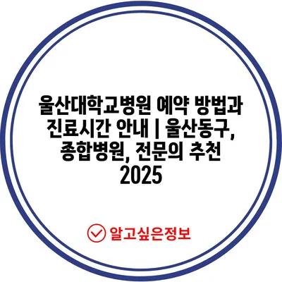 울산대학교병원 예약 방법과 진료시간 안내 | 울산동구, 종합병원, 전문의 추천 2025