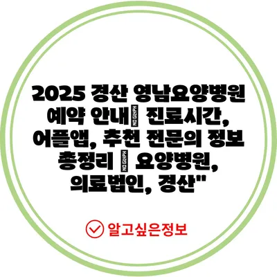 2025 경산 영남요양병원 예약 안내| 진료시간, 어플앱, 추천 전문의 정보 총정리 | 요양병원, 의료법인, 경산”