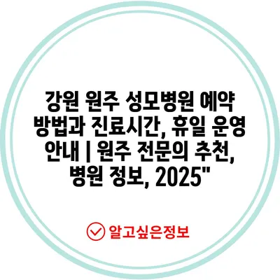 강원 원주 성모병원 예약 방법과 진료시간, 휴일 운영 안내 | 원주 전문의 추천, 병원 정보, 2025″