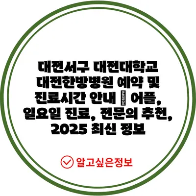 대전서구 대전대학교 대전한방병원 예약 및 진료시간 안내 | 어플, 일요일 진료, 전문의 추천, 2025 최신 정보