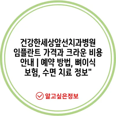 건강한세상앞선치과병원 임플란트 가격과 크라운 비용 안내 | 예약 방법, 뼈이식 보험, 수면 치료 정보”