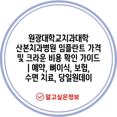 원광대학교치과대학 산본치과병원 임플란트 가격 및 크라운 비용 확인 가이드 | 예약, 뼈이식, 보험, 수면 치료, 당일원데이