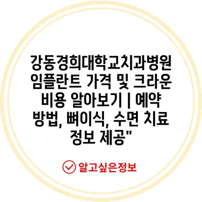 강동경희대학교치과병원 임플란트 가격 및 크라운 비용 알아보기 | 예약 방법, 뼈이식, 수면 치료 정보 제공”