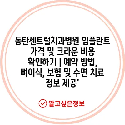 동탄센트럴치과병원 임플란트 가격 및 크라운 비용 확인하기 | 예약 방법, 뼈이식, 보험 및 수면 치료 정보 제공’