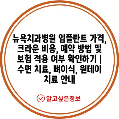 뉴욕치과병원 임플란트 가격, 크라운 비용, 예약 방법 및 보험 적용 여부 확인하기 | 수면 치료, 뼈이식, 원데이 치료 안내