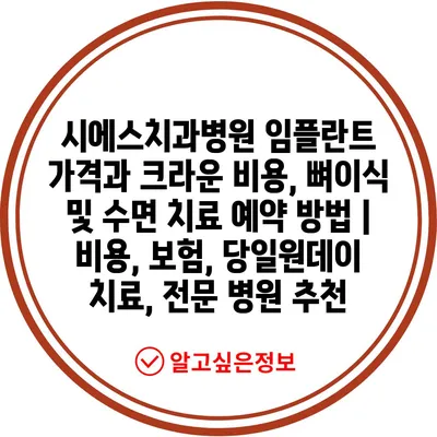 시에스치과병원 임플란트 가격과 크라운 비용, 뼈이식 및 수면 치료 예약 방법 | 비용, 보험, 당일원데이 치료, 전문 병원 추천