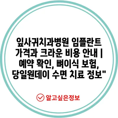 잎사귀치과병원 임플란트 가격과 크라운 비용 안내 | 예약 확인, 뼈이식 보험, 당일원데이 수면 치료 정보”
