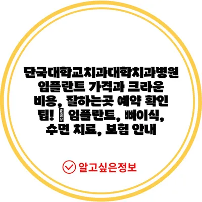 단국대학교치과대학치과병원 임플란트 가격과 크라운 비용, 잘하는곳 예약 확인 팁! | 임플란트, 뼈이식, 수면 치료, 보험 안내