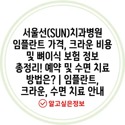 서울선(SUN)치과병원 임플란트 가격, 크라운 비용 및 뼈이식 보험 정보 총정리! 예약 및 수면 치료 방법은? | 임플란트, 크라운, 수면 치료 안내