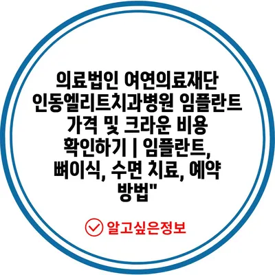 의료법인 여연의료재단 인동엘리트치과병원 임플란트 가격 및 크라운 비용 확인하기 | 임플란트, 뼈이식, 수면 치료, 예약 방법”