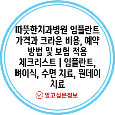 따뜻한치과병원 임플란트 가격과 크라운 비용, 예약 방법 및 보험 적용 체크리스트 | 임플란트, 뼈이식, 수면 치료, 원데이 치료