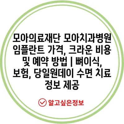모아의료재단 모아치과병원 임플란트 가격, 크라운 비용 및 예약 방법 | 뼈이식, 보험, 당일원데이 수면 치료 정보 제공