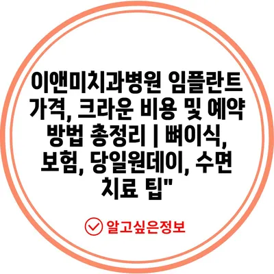 이앤미치과병원 임플란트 가격, 크라운 비용 및 예약 방법 총정리 | 뼈이식, 보험, 당일원데이, 수면 치료 팁”
