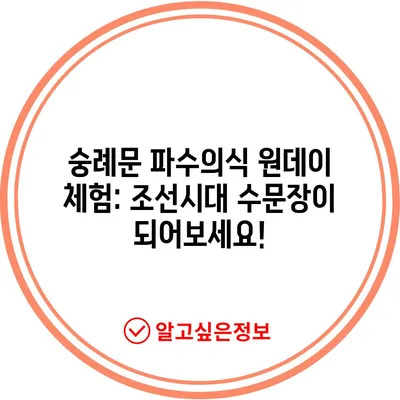 숭례문 파수의식 원데이 파수군 체험: 하루 동안 조선시대 수문장이 되어보세요 숭례문 파수의식 원데이 파수군 체험 개요 숭례문 파수의식 원데이 파수군 체험은 서울의 상징이자 조선 시대 문화의 중요성을 지닌 숭례문에서 진행되는 특별한 프로그램입니다. 이 프로그램은 참여자에게 조선시대 수문장의 역할을 삶의 일부분으로 체험하게 하여, 그들이 당시의 중요하고도 엄숙한 의식을 재현할 수 있도록 돕습니다. 올해, 구체적으로 말씀드리면, 여행자들로 … Read more
