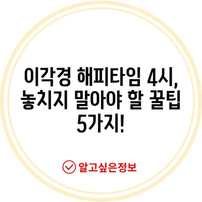 이각경 해피타임 4시, 놓치지 말아야 할 꿀팁 5가지!