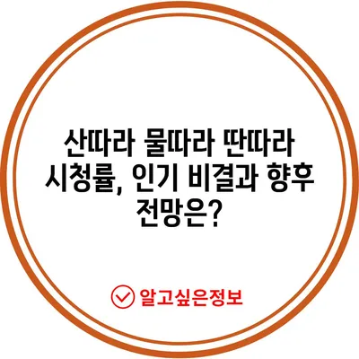 산따라 물따라 딴따라 시청률 분석 인기 비결과 향후 전망 최근 방영되고 있는 예능 프로그램 산따라 물따라 딴따라는 방송 시작과 동시에 시청자들의 높은 관심을 받으며 화제가 되고 있습니다. 이 프로그램은 자연 속에서 펼쳐지는 힐링과 웃음, 그리고 출연진들의 진솔한 모습을 통해 많은 사랑을 받고 있는데요. 이 글에서는 산따라 물따라 딴따라의 시청률 분석을 통해 인기 비결을 살펴보고 향후 … Read more