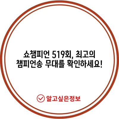 쇼챔피언 519회, 최고의 챔피언송 무대를 확인하세요!